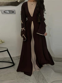 Sa forme ouverte, sa longueur couvrante, et son nœud discret en font une pièce polyvalente à porter lors des prières, pendant le Ramadan, à Eid, ou tout simplement au quotidien. C’est une abaya qui s'adapte à toutes les morphologies, grâce à sa coupe fluide légèrement extensible.